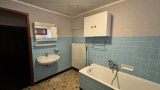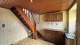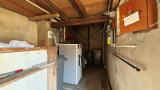 La cuisine donne sur une petite véranda couverte avec un accès direct qui permet de rejoindre la dépendance accolée à la maison, offrant un potentiel de stockage. Le chauffage est assuré par une installation au fioul.